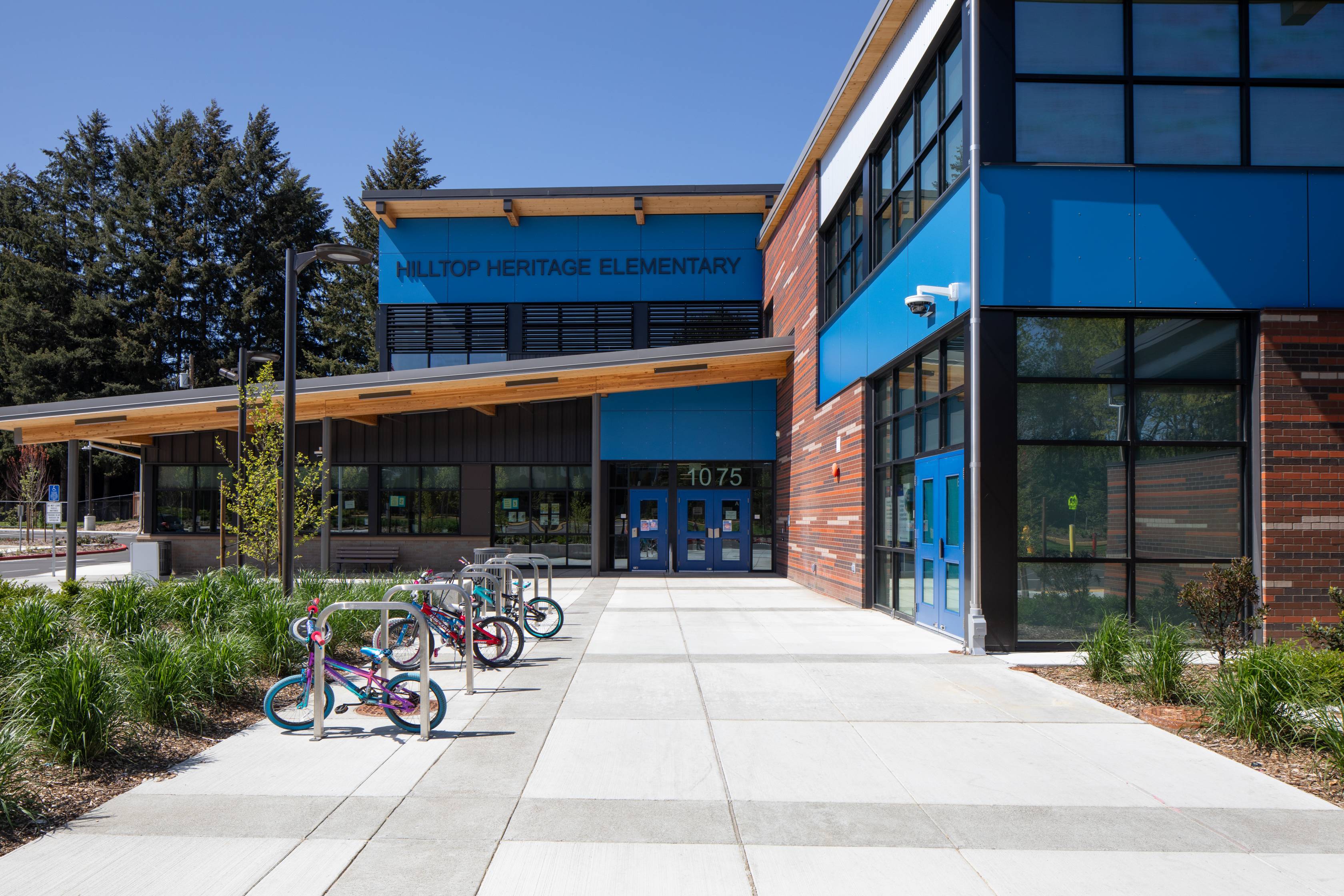 Hilltop Heritage Elementary School was built to accommodate the growth and over-enrollment within the Renton School District. The new 85,000 SF school highlights sustainability by incorporating a mass timber structure that creates a warm and inviting space for the students and staff. Hilltop Heritage is the first elementary school in the Puget Sound region to use mass timber or cross laminated timber for its structure. Serving up to 650 students with 30 classrooms, the building also features outdoor playfields and playground equipment, covered play areas, as well as outdoor learning spaces. The project site had multiple wetland complexes that required wetland buffer averaging, mitigation and enhancement.